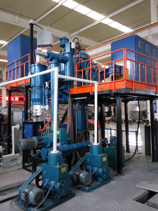 真空感應(yīng)凝鑄爐是利用中頻感應(yīng)加熱原理,在真空或保護(hù)氣氛下,將稀有金屬或特種合金在熔煉坩堝內(nèi)熔化后,澆入凝鑄模具內(nèi),凝鑄模具通過電阻加熱進(jìn)行恒溫保溫,在恒溫狀態(tài)下,由模具升降機(jī)構(gòu)通過一定速度緩慢將模具移出保溫感應(yīng)器,通過模具底部托盤水冷及外部水冷罩將金屬液體冷卻凝固;是為各種稀有金屬及特種合金及其它材料的工業(yè)生產(chǎn)和試驗而設(shè)計的;真空感應(yīng)凝鑄爐還具有傳統(tǒng)鑄錠功能,能實現(xiàn)緩冷鑄棒和傳統(tǒng)鑄錠的快速切換。